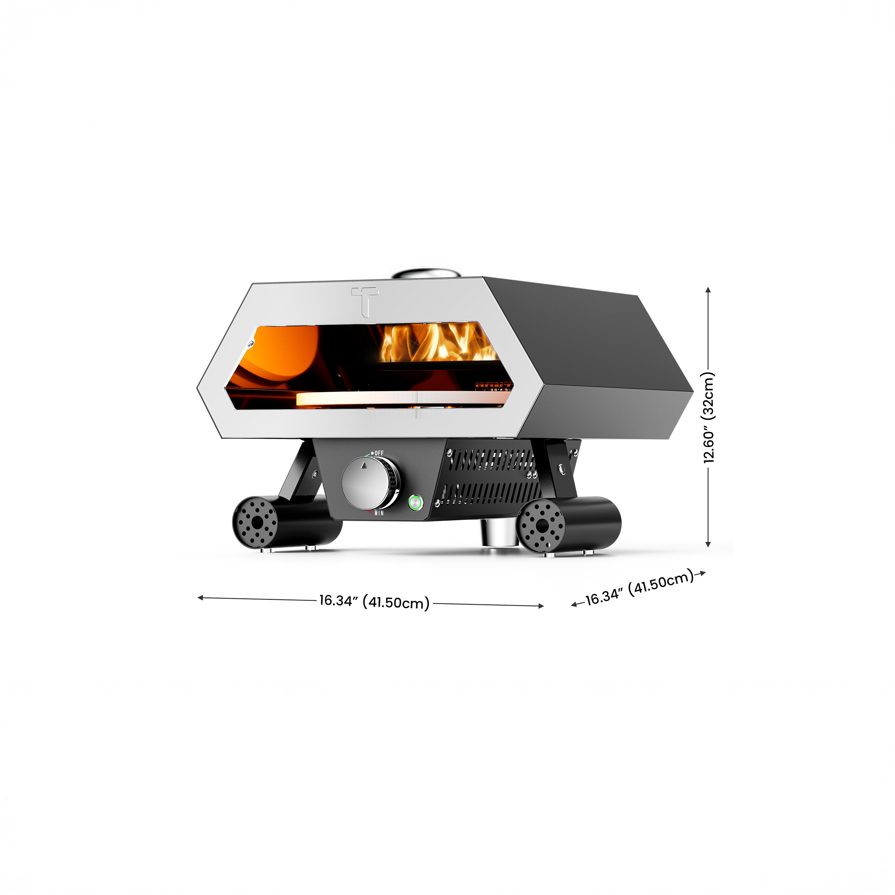 Cooks 12" pizzas ready in just 90 seconds with propane heat up to 950°F (510°C)