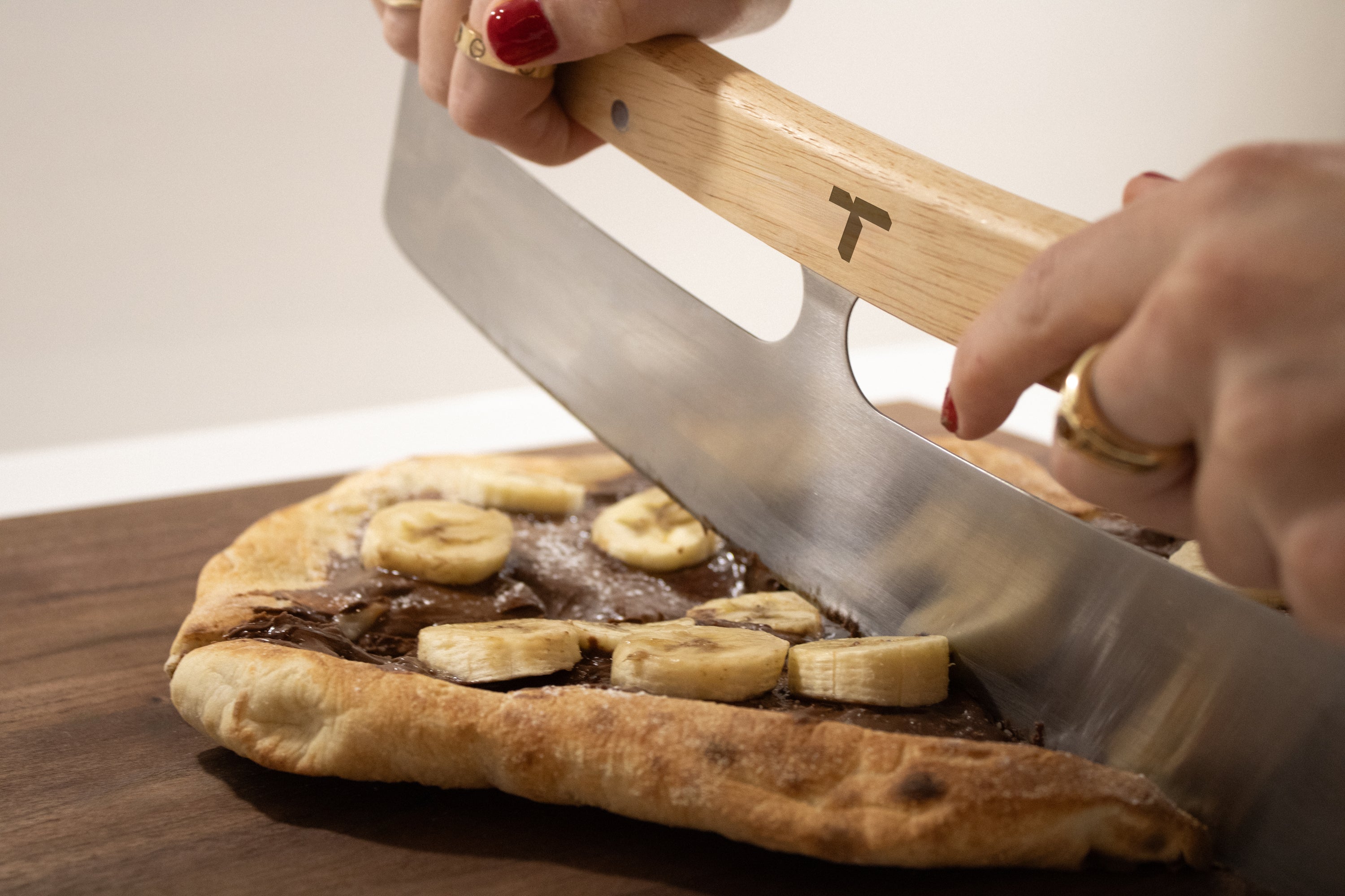 Slice pizza like a pro with the Turpone Rocker Pizza Cutter (Moon Cutter), designed for effortless, restaurant-quality results at home. The 14-inch curved stainless steel blade glides through dough and toppings in one smooth rocking motion, delivering clean, even slices every time. A contoured wooden handle provides comfort and control, while the ultra-sharp blade ensures precision with minimal effort. For added safety, a protective blade case is included, and the cutter is dishwasher safe for quick and easy cleaning. Balanced, durable, and backed by a 7-year warranty, the Turpone Rocker Pizza Cutter is the perfect tool to elevate every pizza night.